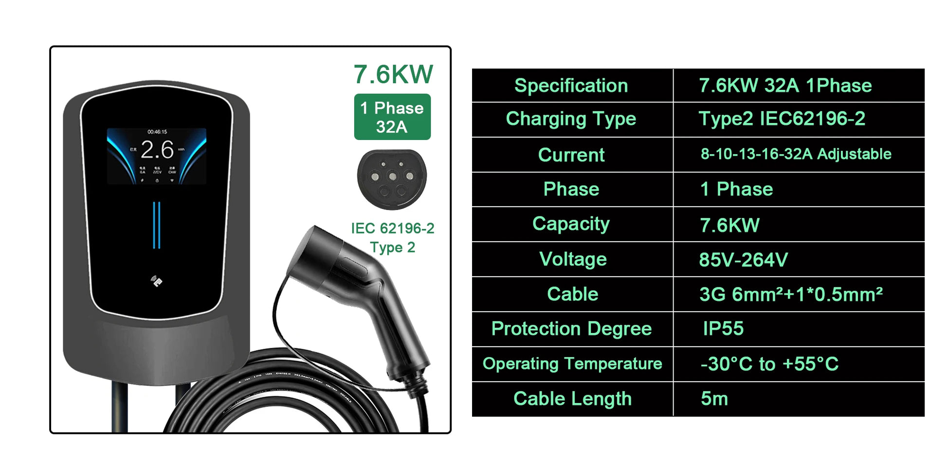 Change the current: 8A/10A/13A/16A/32A adjustable