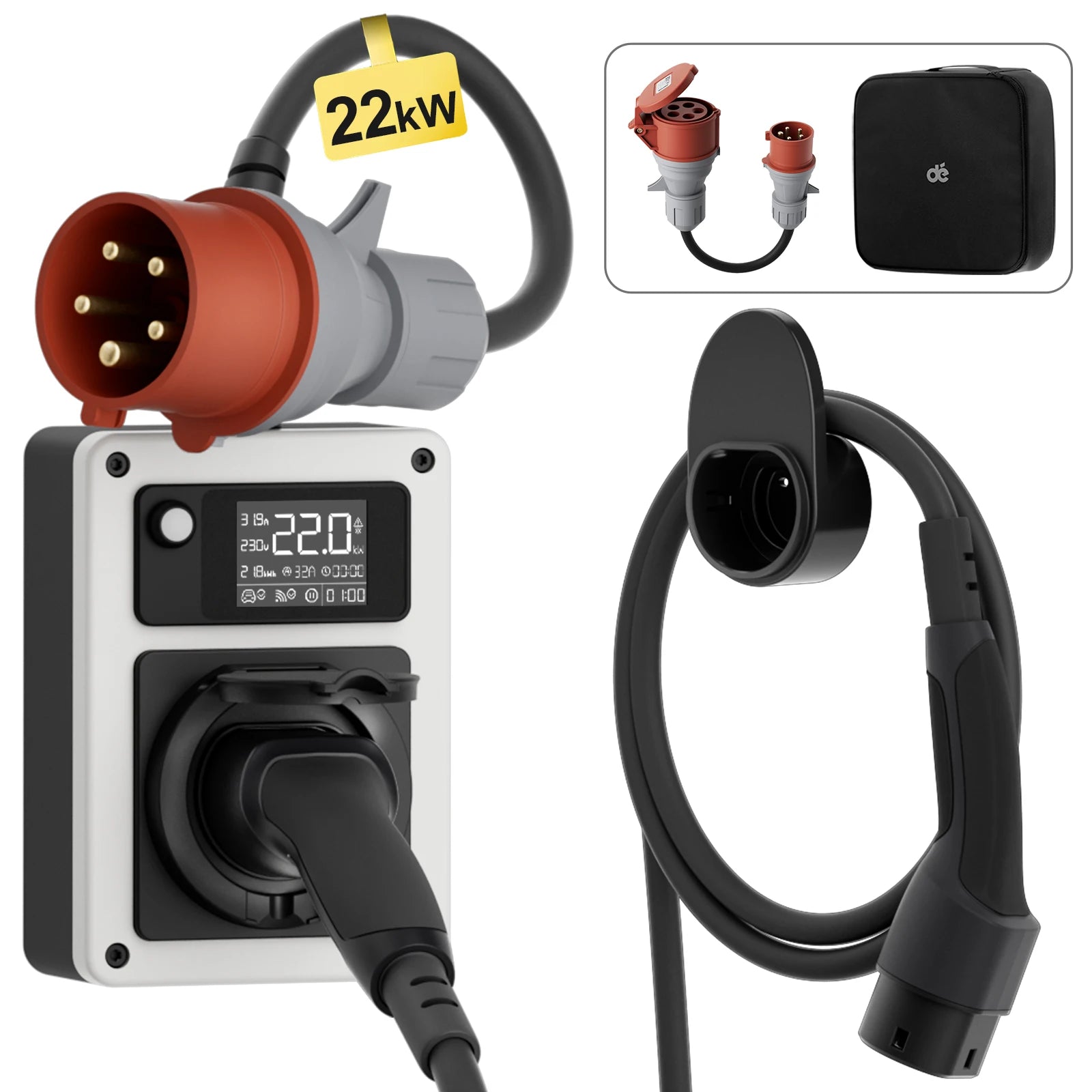 dé Wallbox with App 11kW 22kW CEE to Type 2 Socket EV Charger 16A 32A 3Phase RFID Control Electric Vehicle Charger