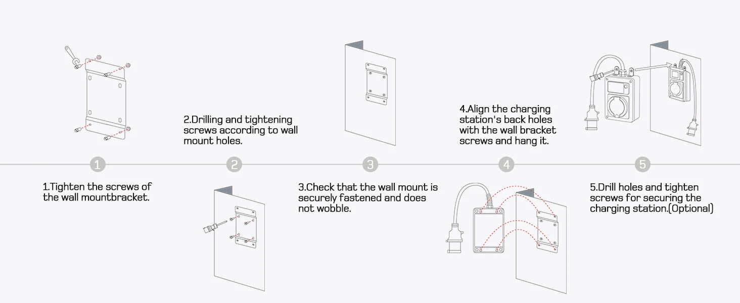 5. Drill holes and tightenthe screws for securing the charging station.[Optional)