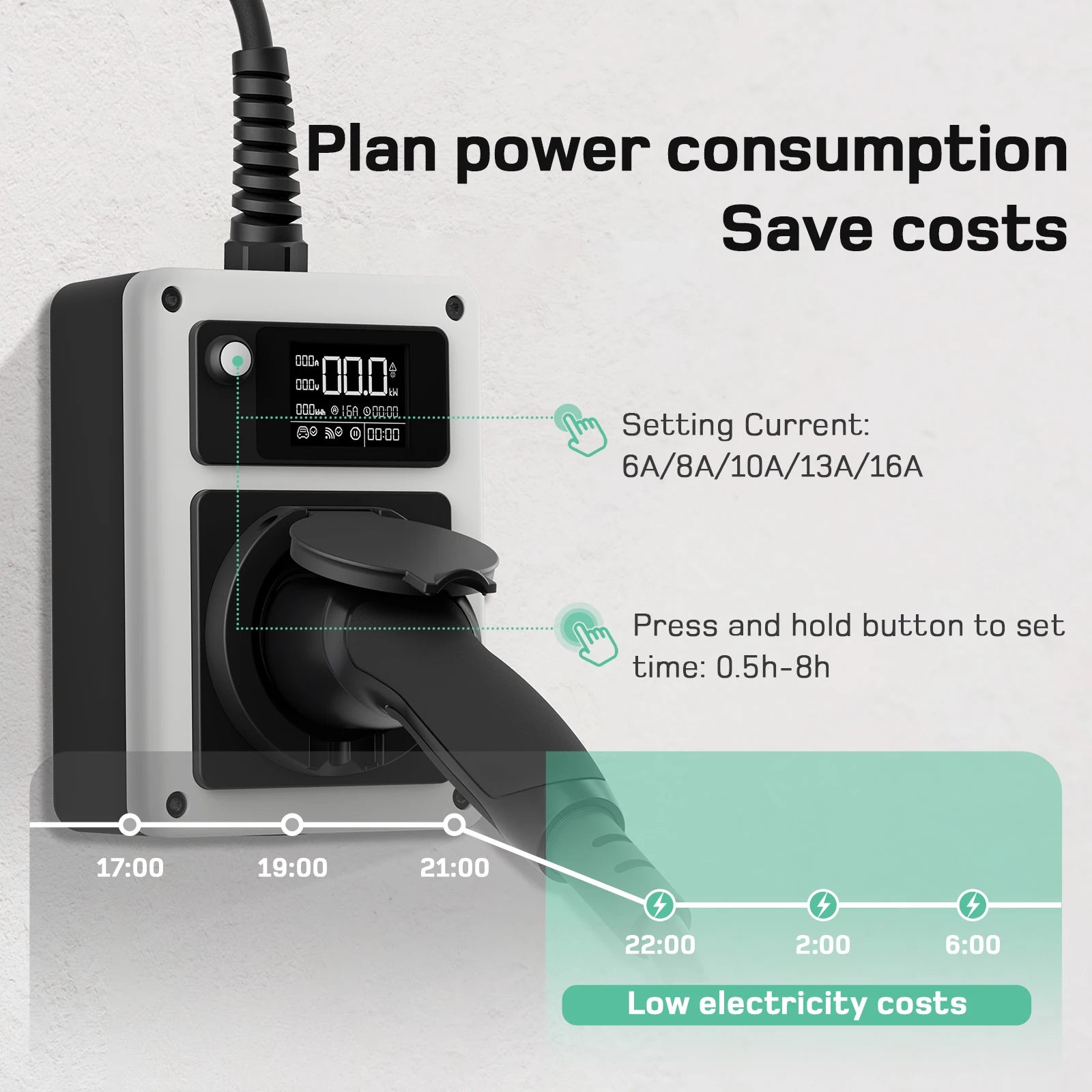 *Safety Assurance*This charging station has type B 30mA AC + DC 6mA technology and a double fuse to protect the charger and electric vehicle during charging. With electronic lock, cannot unplug during charging, ensuring your charging safety.