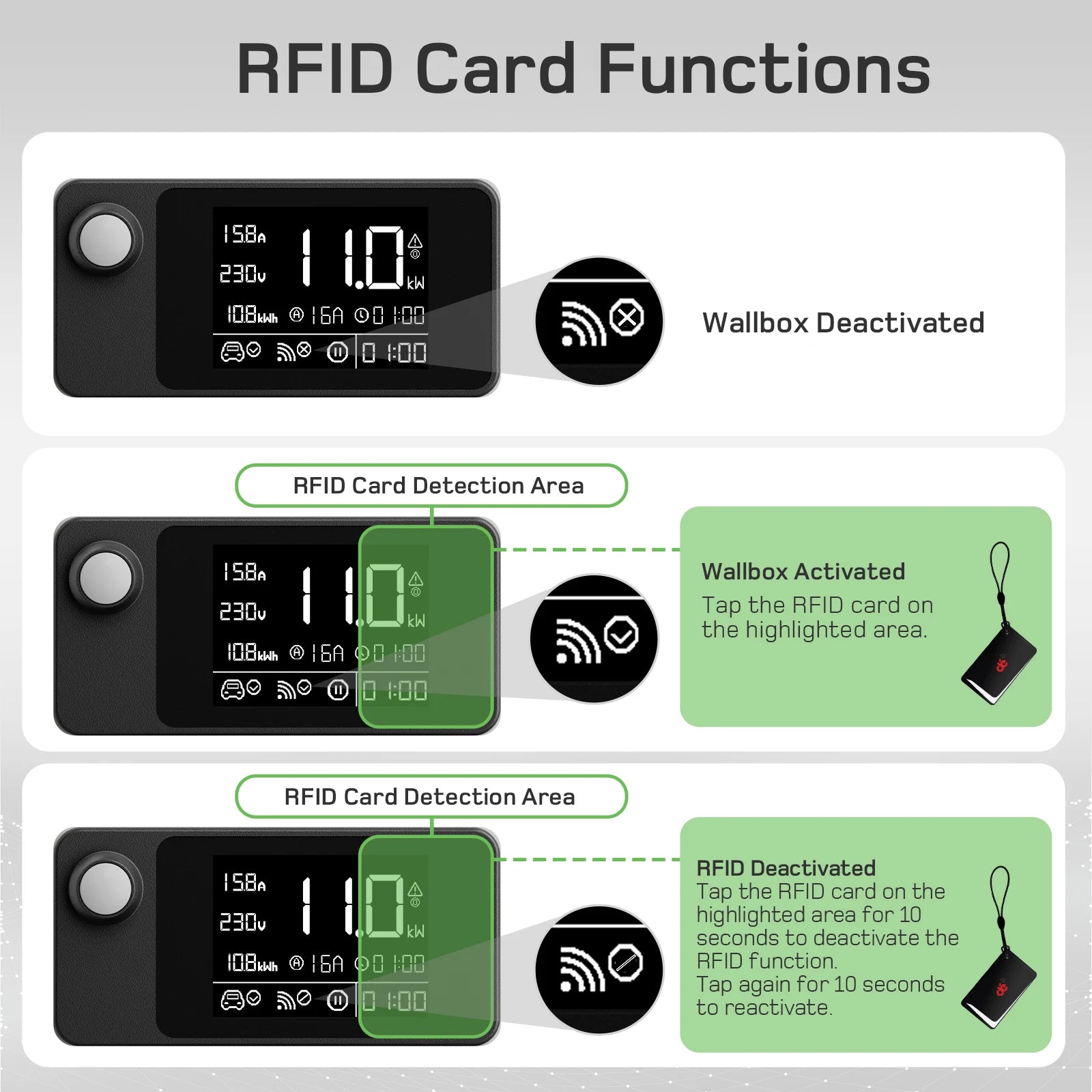 A: The default is Plug and Play mode,swipe the RFlD card at the sensing area for at least 10 secondsuntil the status icon changes to wifiØ , then it is Plug & Play withoutRFlD card. Swipe 10s again to reactivate the RFlD function.