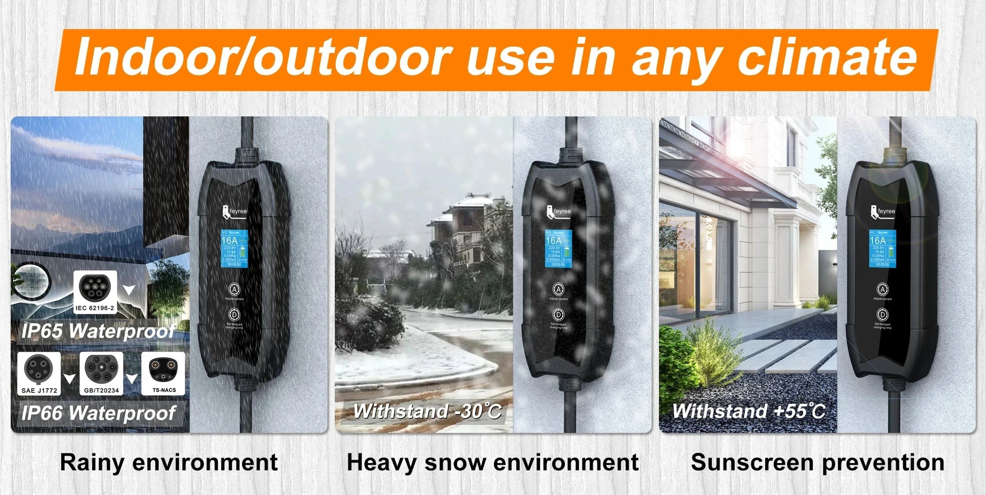 【High Compatibility】Unlike normal EV chargers, our EV chargers are compatible with most electric cars, which meet Type 2 IEC-62169,SAE J1772 type1,GBT standard. All of our products have passed CE certification and TPU certification, and the quality is superior.