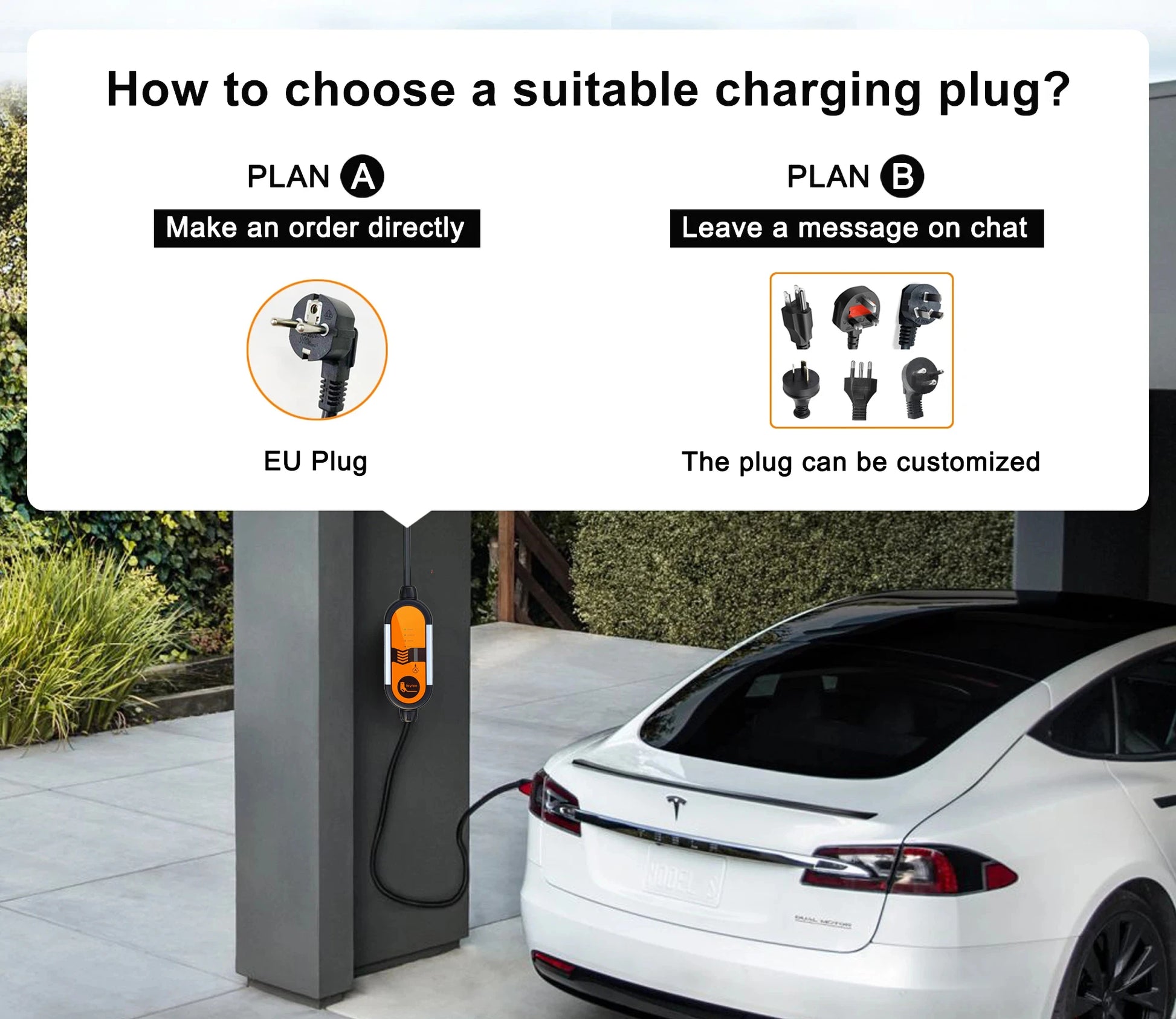 Charging current: 8/10A/13A/16A adjustable. (Use the same current to charge your car next time.)