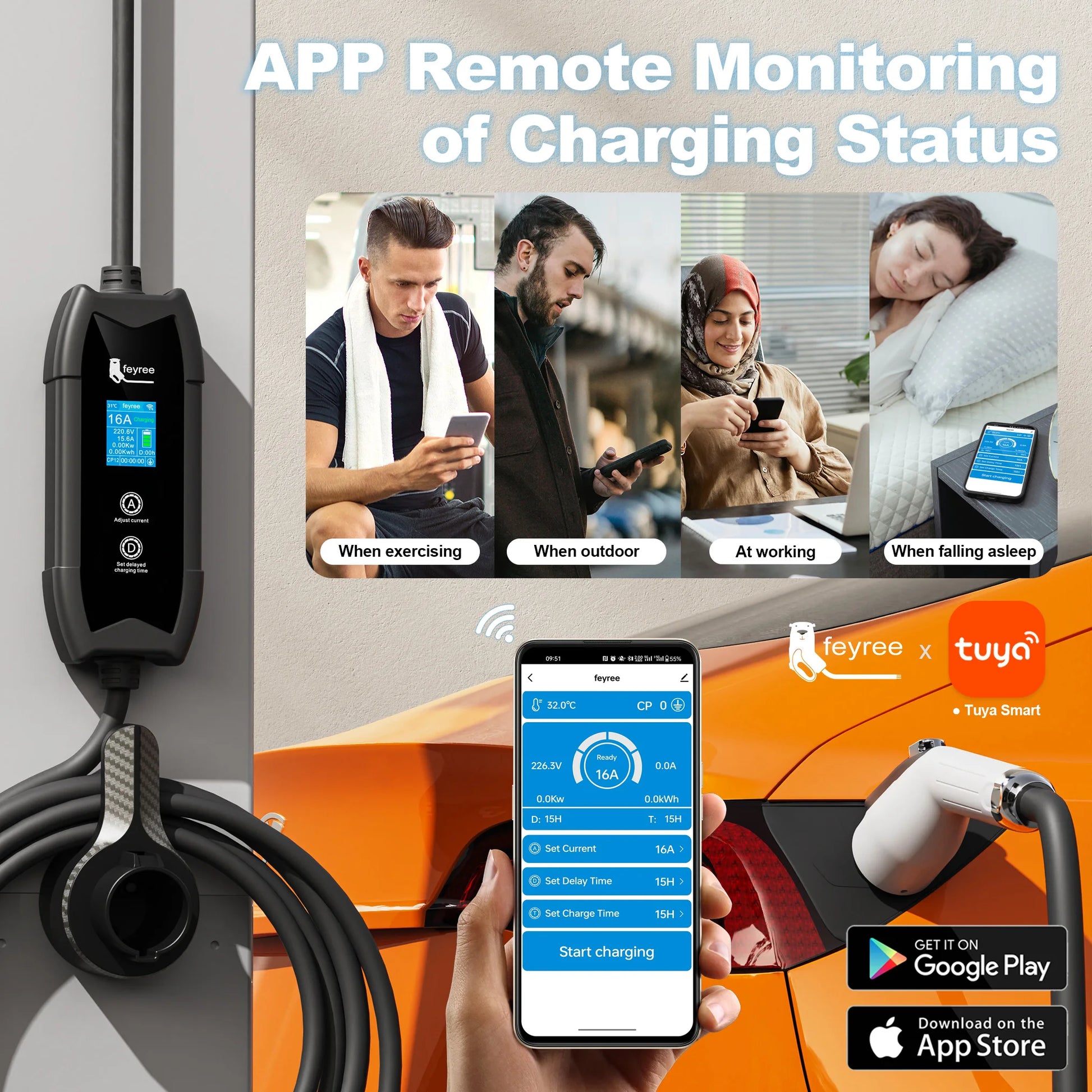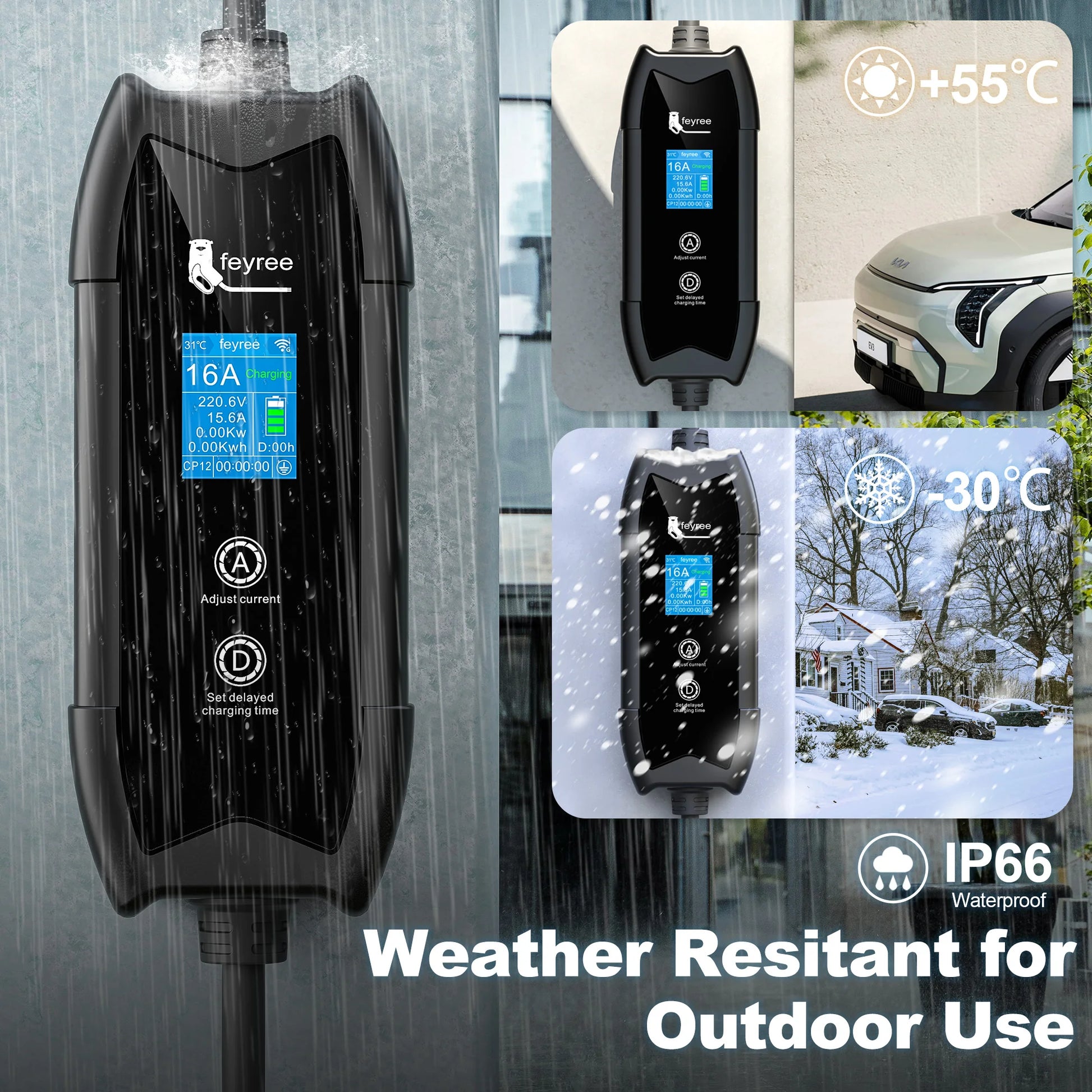 feyree Type1 Portable EV Charger 5m Cable with WIFI APP Control 16A 3.5KW Set Charging&DelayTime for EV Cars,Plug customizable