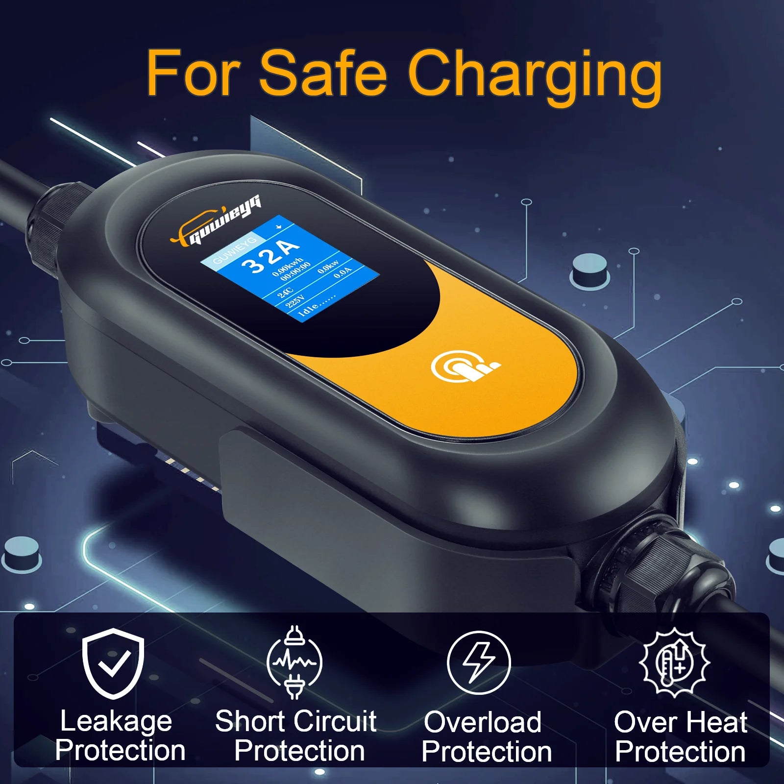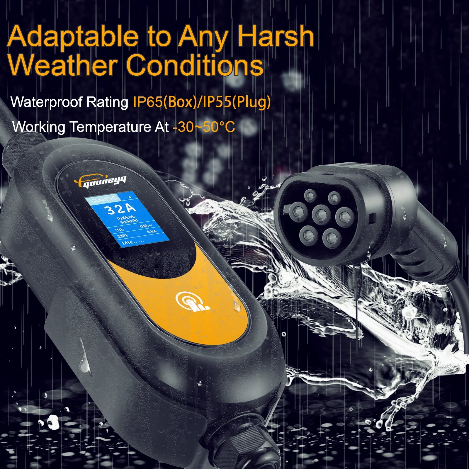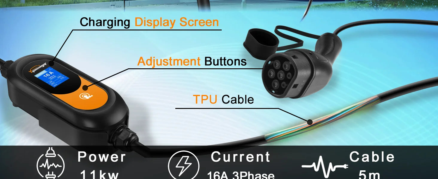 GUWIEYG Type2 Portable EV Charger 11KW/22KW 3Phase Fast Charging IEC62196-2 Controller Wallbox for Electric Car