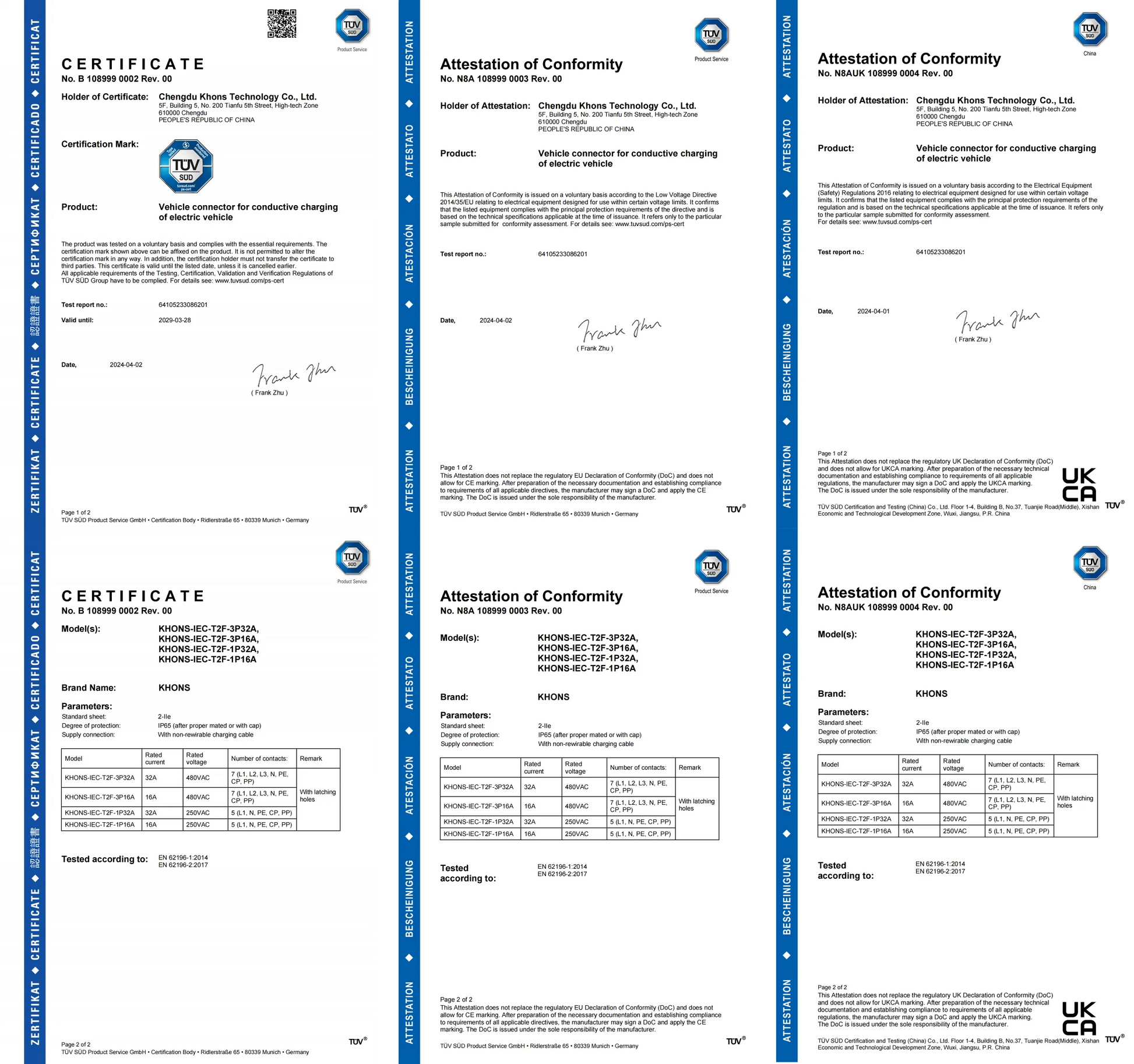 [High compatibility]:The EV charging cable adopts the standard IEC 62196-2 charging protocol, and is compatible with all electric vehicles and plug-in hybrid vehicles. All our products have passed CE certification and TUV certification, with superior quality.
